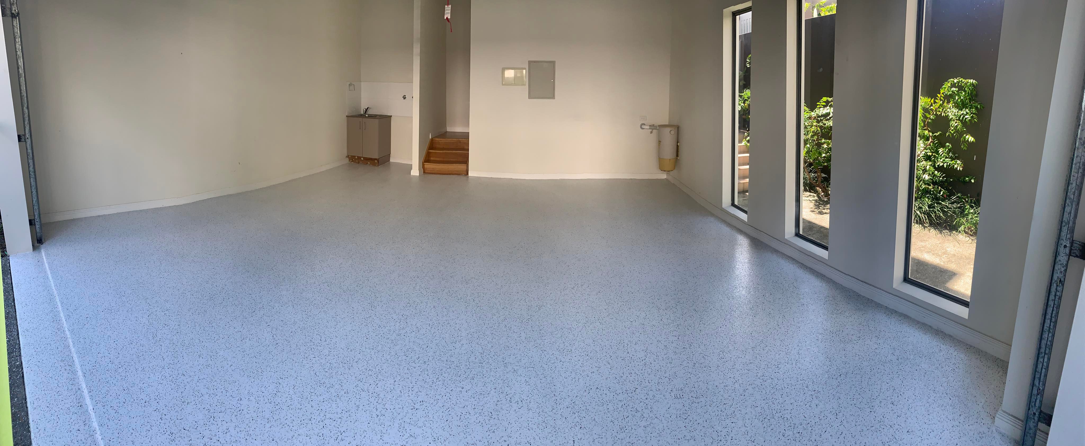 This 15-year-old concrete has been completed with ice flakes 5-coat epoxy coating system.